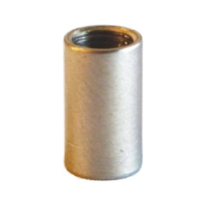 Manguito de metal en acabado acero. Con rosca interna para enlazar dos partes de una lámpara de forma decorativa. Pieza muy útil para prolongar roscas que quedan a la vista. Paso de rosca interna 10/100 (tipo universal para lámparas)
