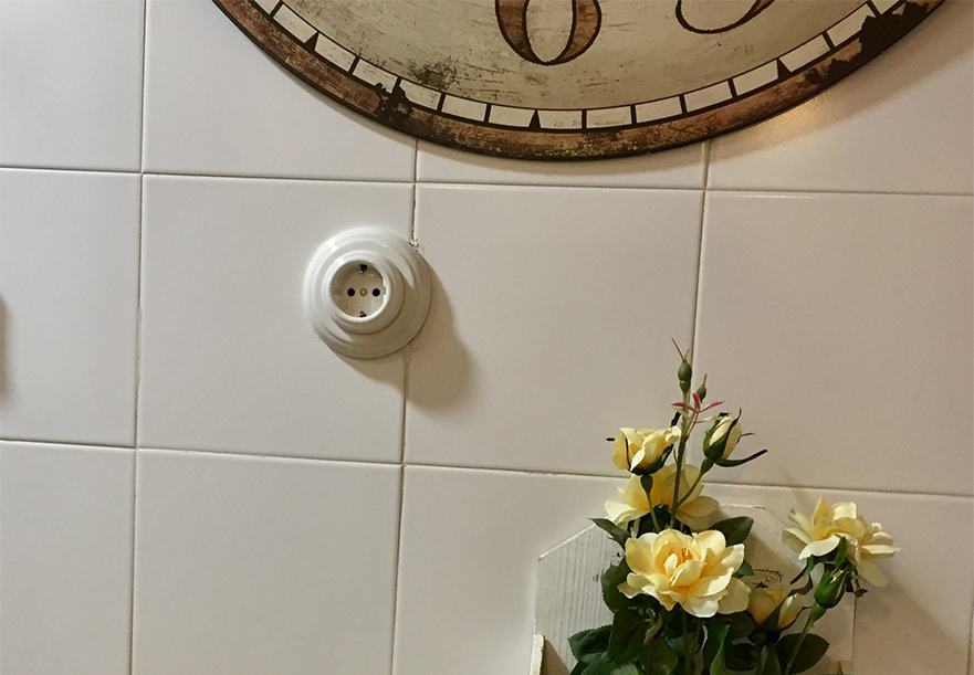 Marco de porcelana redondo para la instalación de 1 elemento empotrado.