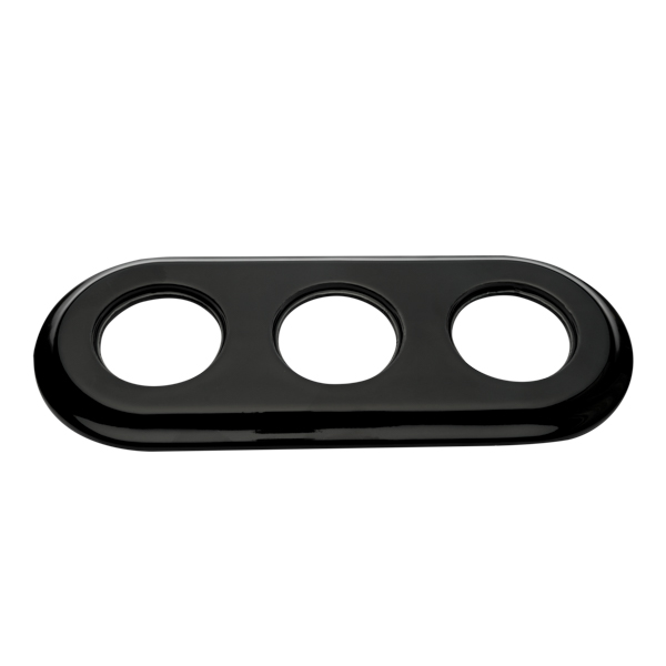 Marco fabricado en porcelana para instalación de tres elementos de esta serie empotrada en cajetín (valido para caja redonda o cuadrada)
