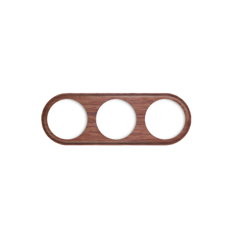 Marco de madera redondo para la instalación de 3 elementos en superficie. Entrada lateral para cable.