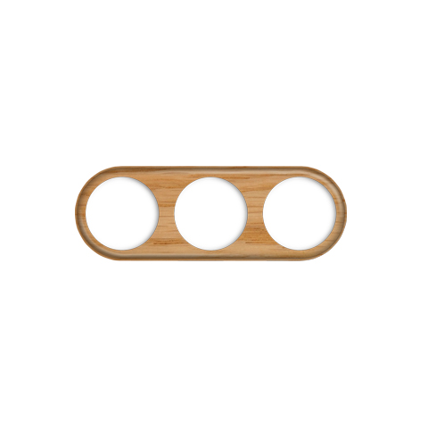 Marco de madera redondo para la instalación de 3 elementos en superficie. Entrada lateral para cable.