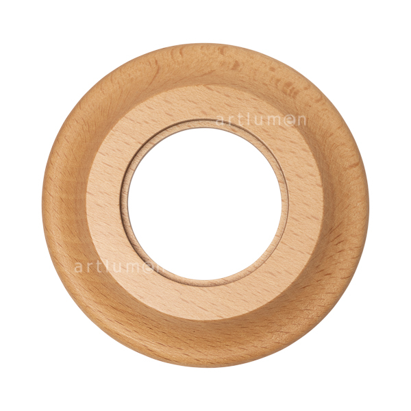 Marco de madera para instalación de un elemento de esta serie empotrada en cajetín (valido para caja redonda o cuadrada). Bonita madera de Haya, con suaves formas redondeadas, torneada a mano y barnizada en acabado natural.