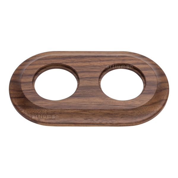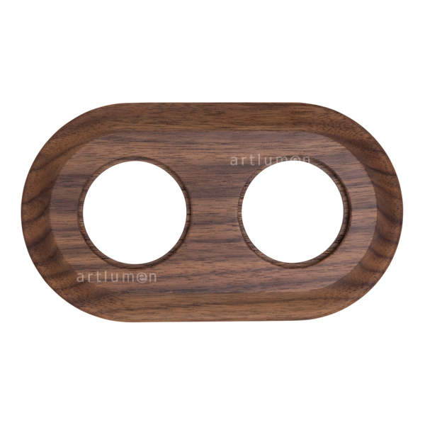 Marco de madera nogal para instalación de dos elementos de esta serie empotrada en cajetín (valido para caja redonda o cuadrada).