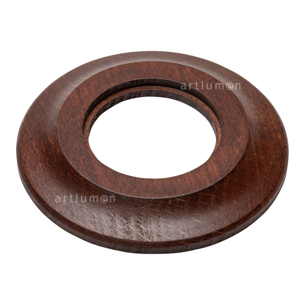 Marco de madera para instalación de un elemento de esta serie empotrada en cajetín (valido para caja redonda o cuadrada). Bonita madera de Haya, con suaves formas redondeadas, torneada a mano y barnizada en color castaño oscuro.