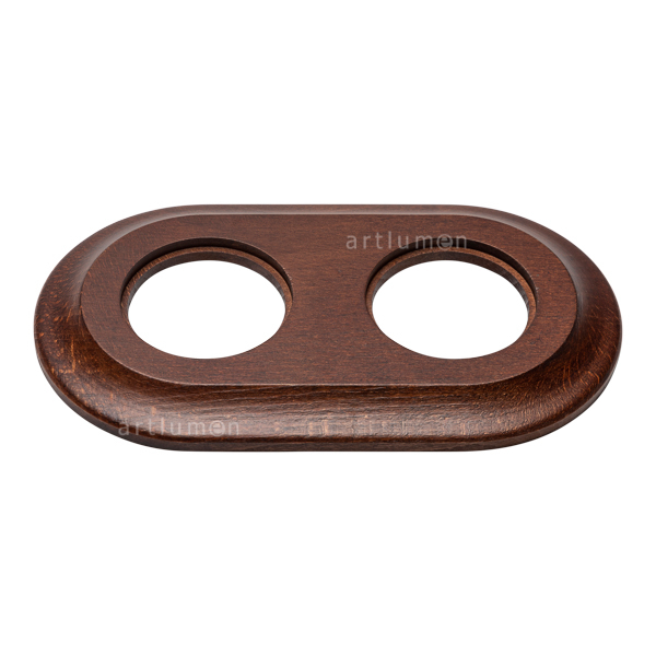Marco de madera para instalación de dos elementos de esta serie empotrada en cajetín (valido para caja redonda o cuadrada). Bonita madera de Haya, con suaves formas redondeadas, torneada a mano y barnizada en color castaño oscuro.
