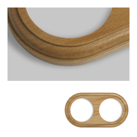 Marco de madera redondo para la instalación de 2 elementos empotrados. Marcos trabajados artesanalmente. Tratados con barniz incoloro mantienen toda su belleza natural. Cada pieza, exclusiva en sí misma, nunca presentará la uniformidad de un producto plástico. Es única y diferente en función del corte de la madera y sus vetas.
