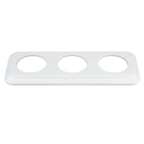 Marco fabricado en porcelana para instalación de tres elementos de esta serie empotrada en cajetín (valido para caja redonda o cuadrada)
