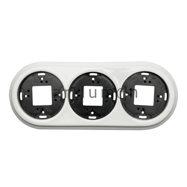 Platillo embellecedor de porcelana para usar de marco con tres mecanismos de superficie.