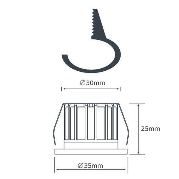 Dimensiones: diámetro=35mm altura=25mm Orificio empotrado de 30 mm