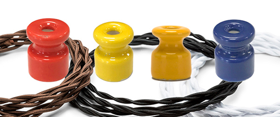 Los nuevos aislantes de porcelana azules, rojos y amarillos son de colores vivos y aportan un toque divertido y diferente a tu instalación.