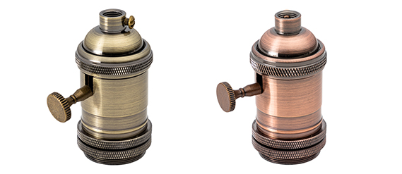 Portalámparas con interruptor de cadena o con interruptor rotativo.También añadimos a nuestra colección de portalámparas vintage el acabado cobre brillo.