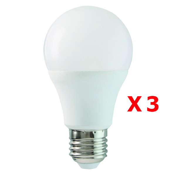 Pack de 3 bombillas LED estándar. Consumo de solo 10W, equivale a una bombilla tradicional de unos 90W (923 Lumens).