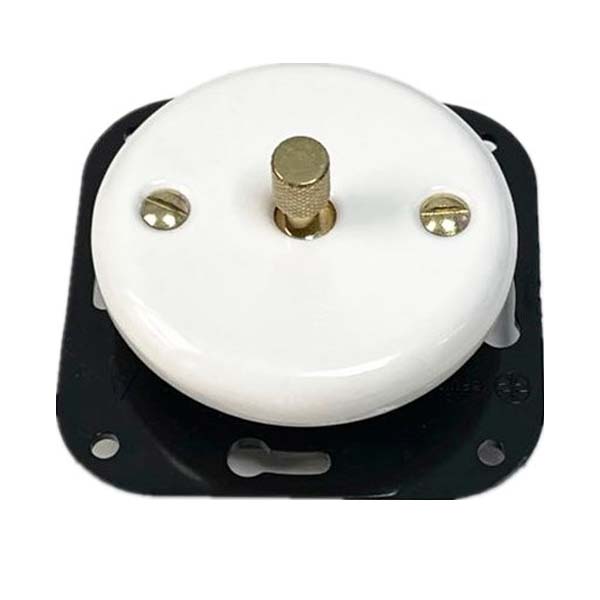 Interruptor conmutado con mecanismo de palanca metálica dorada.