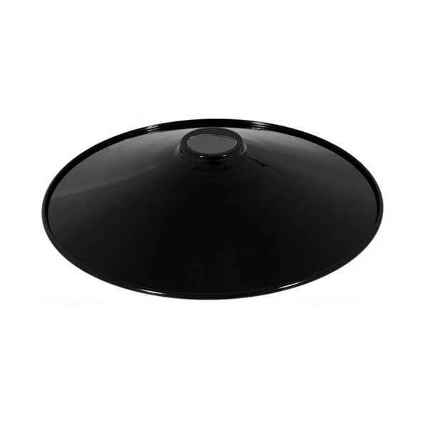 Plato plano metálico de color negro mate para ser utilizado como pantalla para lámparas colgantes o de pared. Bordes del plato redondeados. Para ser utilizado con portalámparas de sujeción de pantallas.