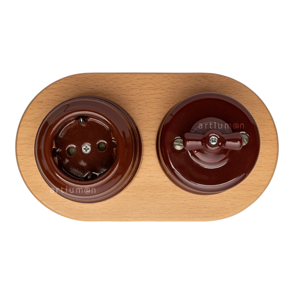 Peana de madera de grosor fino para usar como base de mecanismos. Ideal para interruptores y enchufes de porcelana o replicas retro. Realza la belleza del mecanismo que colocamos encima. Madera redonda barnizada en color natural, para dos elementos. Instalación en superficie. La madera no tiene ningún orificio para poderlos hacer según el tipo y tamaño de mecanismo.
