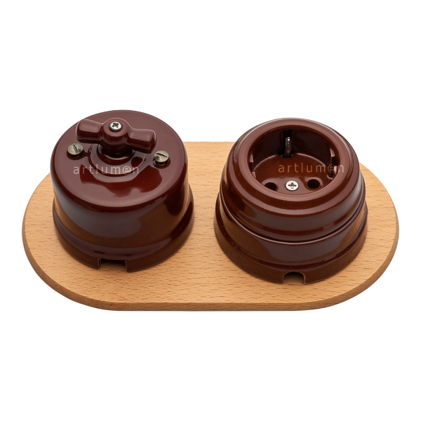 Peana de madera de grosor fino para usar como base de mecanismos. Ideal para interruptores y enchufes de porcelana o replicas retro. Realza la belleza del mecanismo que colocamos encima. Madera redonda barnizada en color natural, para dos elementos. Instalación en superficie. La madera no tiene ningún orificio para poderlos hacer según el tipo y tamaño de mecanismo.
