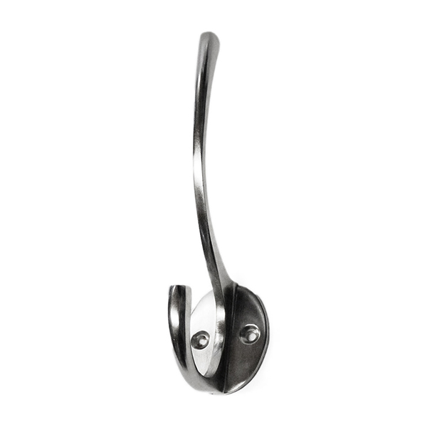 Percha fabricada en latón, acabado níquel mate. Con dos colgadores