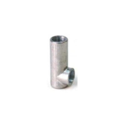 Manguito pipa fabricado en metal (zamak) en acabado gris mate. Con rosca interna para enlazar dos partes de una lámpara en 90 grados. Paso de rosca interna 10/100 (tipo universal para lámparas)