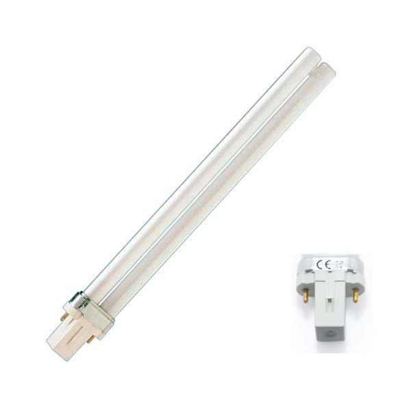 Bombilla tipo PL de 11W para portalámparas de 2 pines. De luz blanco neutro