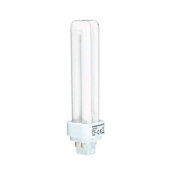 Lámpara fluorescente compacta de bajo consumo OSRAM DULUX D/E para utilizar con balastro electrónico (2x18W).