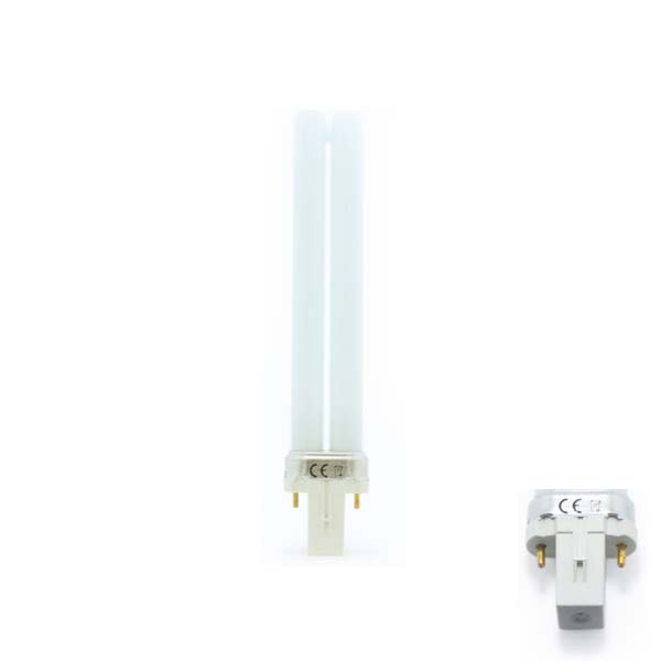 Bombilla tipo PL de 7W para portalámparas de 2 pines. De luz blanco neutro