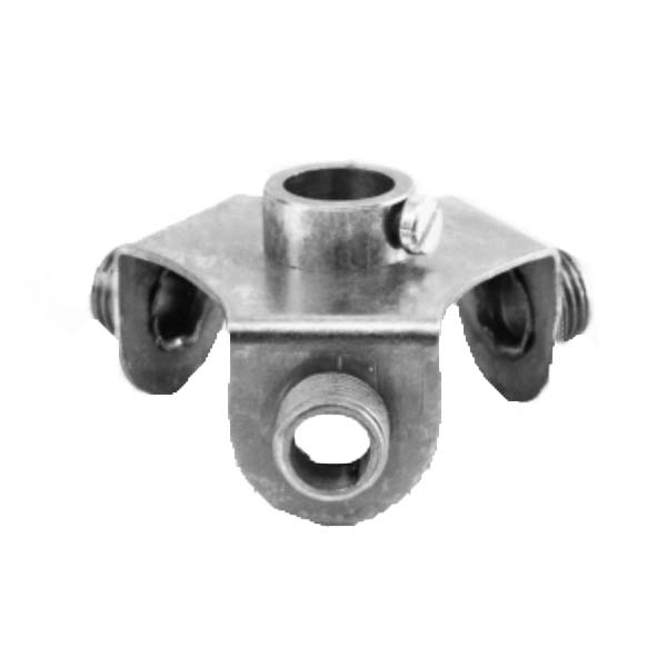 Base para fijar a tijas o espárragos mediante su prisionero y disponer de 3 roscas macho de paso 10/100 (tipo universal para lámparas actuales). Ideal para roscar 3 casquillos o cualquier otro accesorio de lámparas.