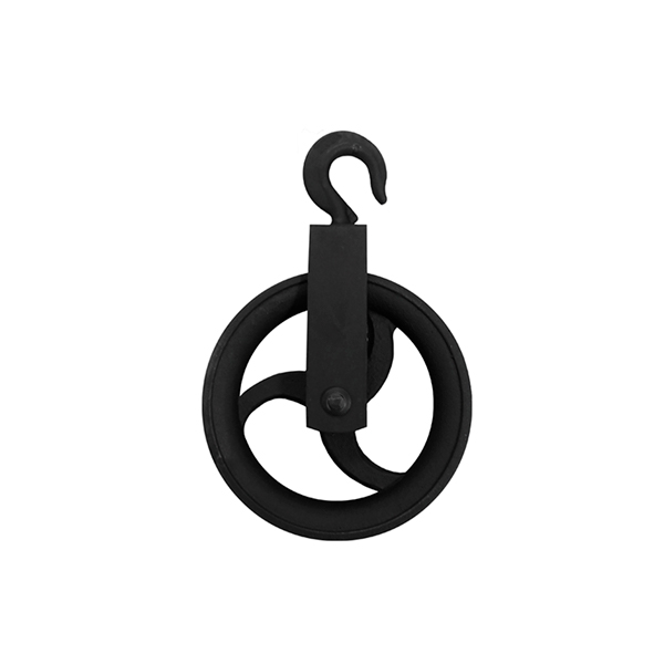 Polea metálica de color negra para crear lámparas decorativas de aspecto rústico. Esta típica polea de pozo, de 120mm de diámetro, combinada con alguno de nuestros cables de tipo cuerda, puede usarse para crear una bonita lámpara de techo, fijándola mediante su gancho. El cable se puede dejar a una altura fija o ajustable, usando la rueda.