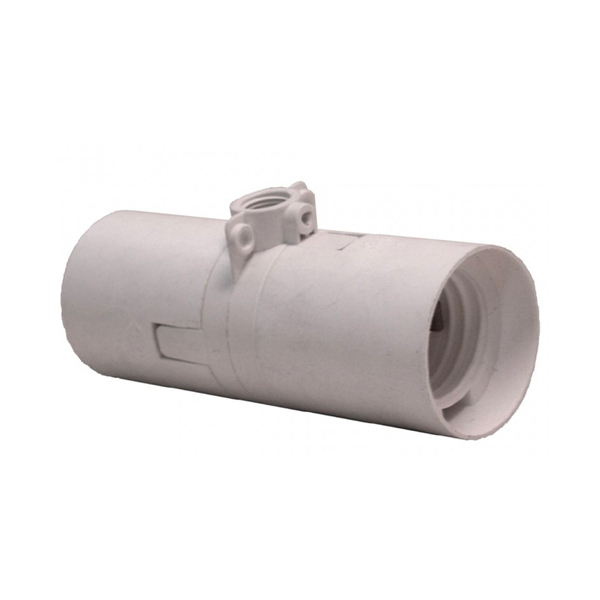 Portalámparas doble, 2 roscas E-27, de material termoplástico autoextinguible. Ideal para diseñar lámparas de doble casquillo o substituir el portalámparas actual y poder usar dos bombillas. Los portalámparas se pueden puentear para una única encendida o cablear por separado para encendido individual.
