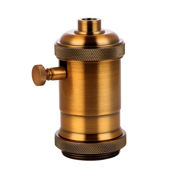 Este portalámparas con regulador es un casquillo para bombillas de rosca estándar fabricado en latón, de estilo vintage y de color latón envejecido. Incorpora en su cuerpo un interruptor con regulador de intensidad de luz. Para que el regulador funcione hay que utilizar bombillas regulables.