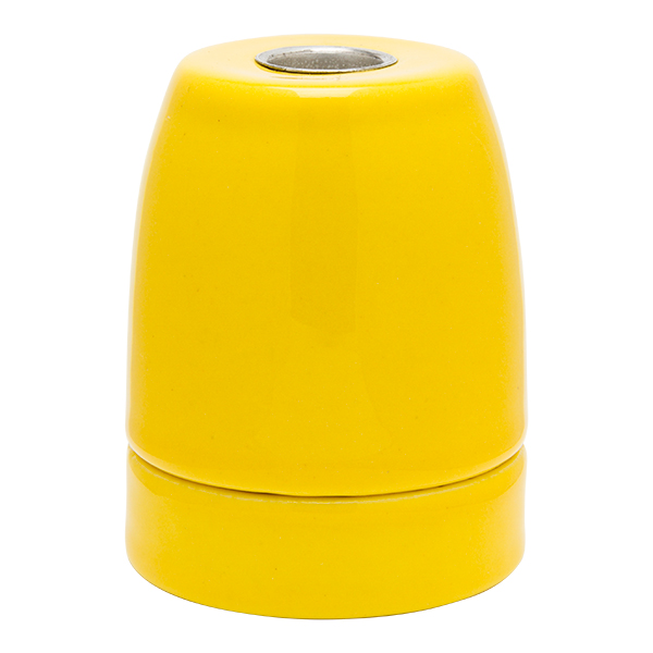 Portalámparas de porcelana amarillo. Cuerpo liso en porcelana esmaltada de color amarillo. Estilo vintage. Casquillo para bombillas de rosca estándar E-27. Parte superior con paso de rosca 10/100. Embornamiento del cable por tornillos.