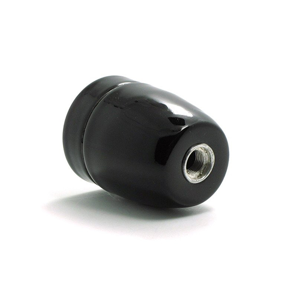 Portalámparas de porcelana negro. Cuerpo liso en porcelana esmaltada de color negro. Estilo vintage. Casquillo para bombillas de rosca estándar E-27. Parte superior con paso de rosca 10/100. Embornamiento del cable por tornillos.