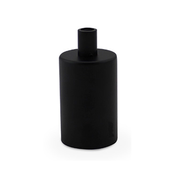 Casquillo de rosca E-27 con funda de aluminio negra. Incluye prensacables liso de plástico negro.