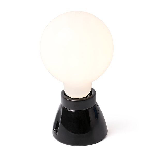 Portalámparas para bombillas de casquillo E27 fabricado en porcelana de color negra esmaltada. Sus formas suaves y redondeadas encajan en las decoraciones de estilo nórdico.