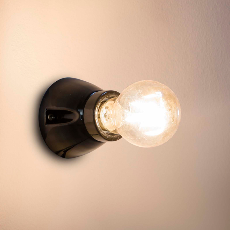 Portalámparas para bombillas de casquillo E27 fabricado en porcelana de color negra esmaltada. Sus formas suaves y redondeadas encajan en las decoraciones de estilo nórdico.