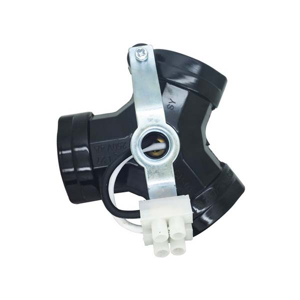 Accesorio para crear una lámpara de 3 casquillos de rosca E-27. Con una sola conexión eléctrica permite usar hasta 3 bombillas de rosca estándar E27. Portalámparas triple de plástico termo-resistivo en color negro. Con una estructura metálica con rosca hembra 10/100 en las dos caras.