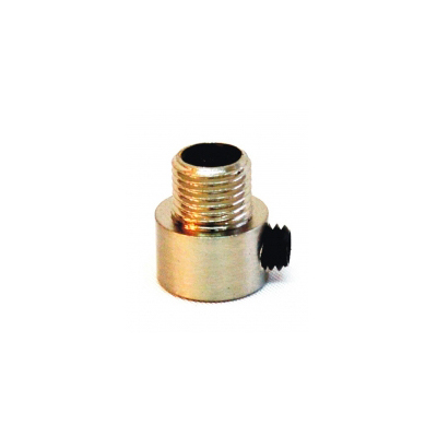 Sujeta-cables metálico en acabado acero con rosca macho paso 10/100 (el mismo que tienen todos nuestros portalámparas)
