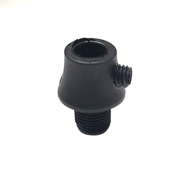 Sujeta cables de plástico de color negro con paso de rosca macho. La parte por donde entra el cable, es de forma cónica y dispone de un tornillo lateral. Elemento que tiene la función de fijar el cable del portalámparas para evitar que el tornillo soporte el peso o rotura en caso de tirón. Imprescindible en los colgantes de lámparas. Rosca macho paso 10/100 (el mismo que tienen todos nuestros portalámparas)