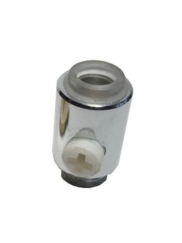 Sujetacables de metal cromado. Remate perfecto para portalámparas cromados. Elemento decorativo que tiene la función de fijar el cable del portalámparas para evitar que el tornillo soporte el peso o rotura en caso de tirón.