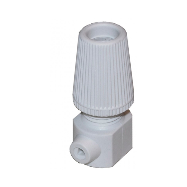 Sujeta cables de plástico de color blanco con paso de rosca hembra. Con base reforzada. Elemento que tiene la función de fijar el cable del portalámparas para evitar que el tornillo soporte el peso o rotura en caso de tirón. Imprescindible en los colgantes de lámparas. Rosca hembra paso 10/100 (el mismo que tienen todos nuestros portalámparas)