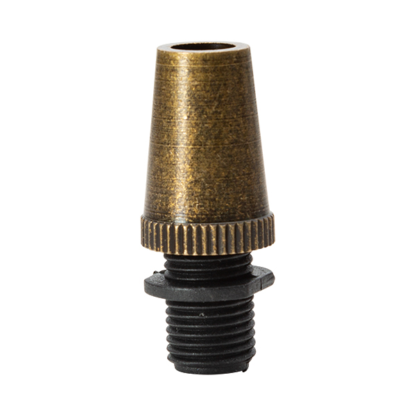 Prisionero sujeta cables con capuchón embellecedor de metal acabado dorado envejecido. Remate perfecto para portalámparas y florones metálicos. Elemento decorativo que tiene la función de fijar el cable del portalámparas para evitar que el tornillo soporte el peso o rotura en caso de tirón. Imprescindible en los colgantes de lámparas. Rosca macho paso 10/100 (el mismo que tienen todos nuestros portalámparas)