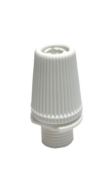 Sujetacables reforzado de plástico en color blanco. Elemento decorativo que tiene la función de fijar el cable del portalámparas para evitar que el tornillo soporte el peso o rotura en caso de tirón.