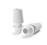 Sujetacables reforzado de plástico en color blanco. Elemento decorativo que tiene la función de fijar el cable del portalámparas para evitar que el tornillo soporte el peso o rotura en caso de tirón.