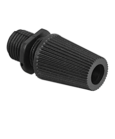 Sujetacables reforzado de plástico en color negro. Elemento decorativo que tiene la función de fijar el cable del portalámparas para evitar que el tornillo soporte el peso o rotura en caso de tirón. Imprescindible en los colgantes de lámparas. Rosca macho paso 10/100 (el mismo que tienen todos nuestros portalámparas)