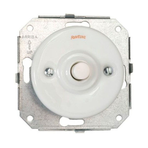 Pulsador de botón, fabricado en porcelana de color blanca. Carátula y botón de porcelana.