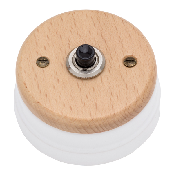 Pulsador madera clara y porcelana