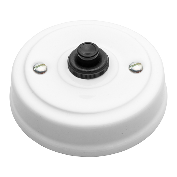 Pulsador de timbre fabricado en porcelana blanca. El mecanismo de pulsador es de color negro, de reducido tamaño y se integra a la perfección con la porcelana. Se puede instalar de forma individual, con una base de madera o en un conjunto, combinándolo con otro mecanismo de esta misma serie; enchufes, interruptores, etc.