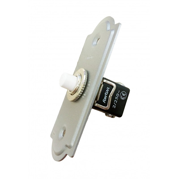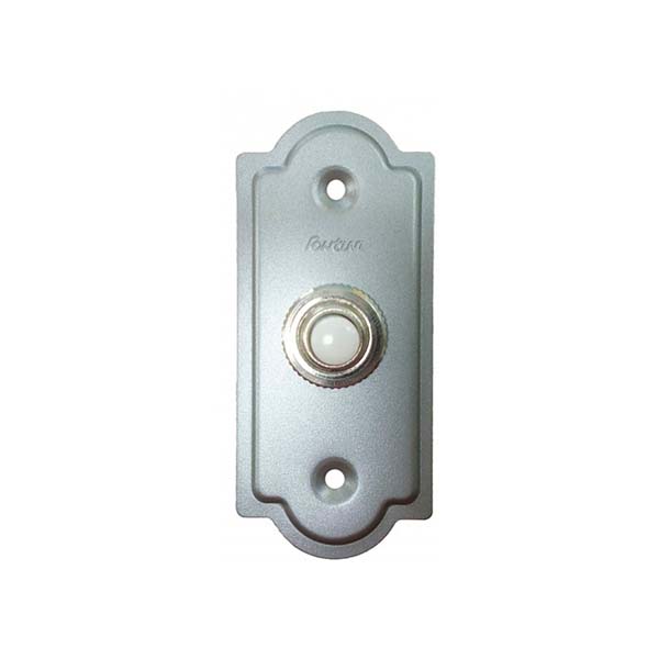 Pulsador de timbre decorativo con placa de metal acabado cromo mate. Estilo años 40.