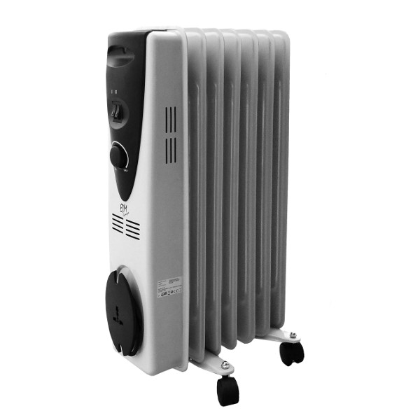 Radiador de aceite de 7 elementos con una potencia máxima de 1500W.