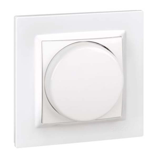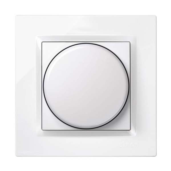 Mecanismo de Interruptor, regulador de intensidad. Permite regular luminarias y bombillas LED (que sean compatibles con regulador). Se enciende pulsando, se regula girando. De color blanco. Para instalación empotrada.