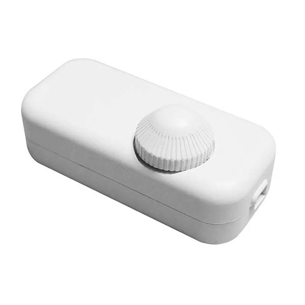 Interruptor giratorio, DIMMER para lámparas LED, incandescentes o halògenes. Instalación pasante en el cable. El mínimo del ajuste del flujo de lámparas LED depende del fabricante de la lámpara, puede variar de 10% a 40%